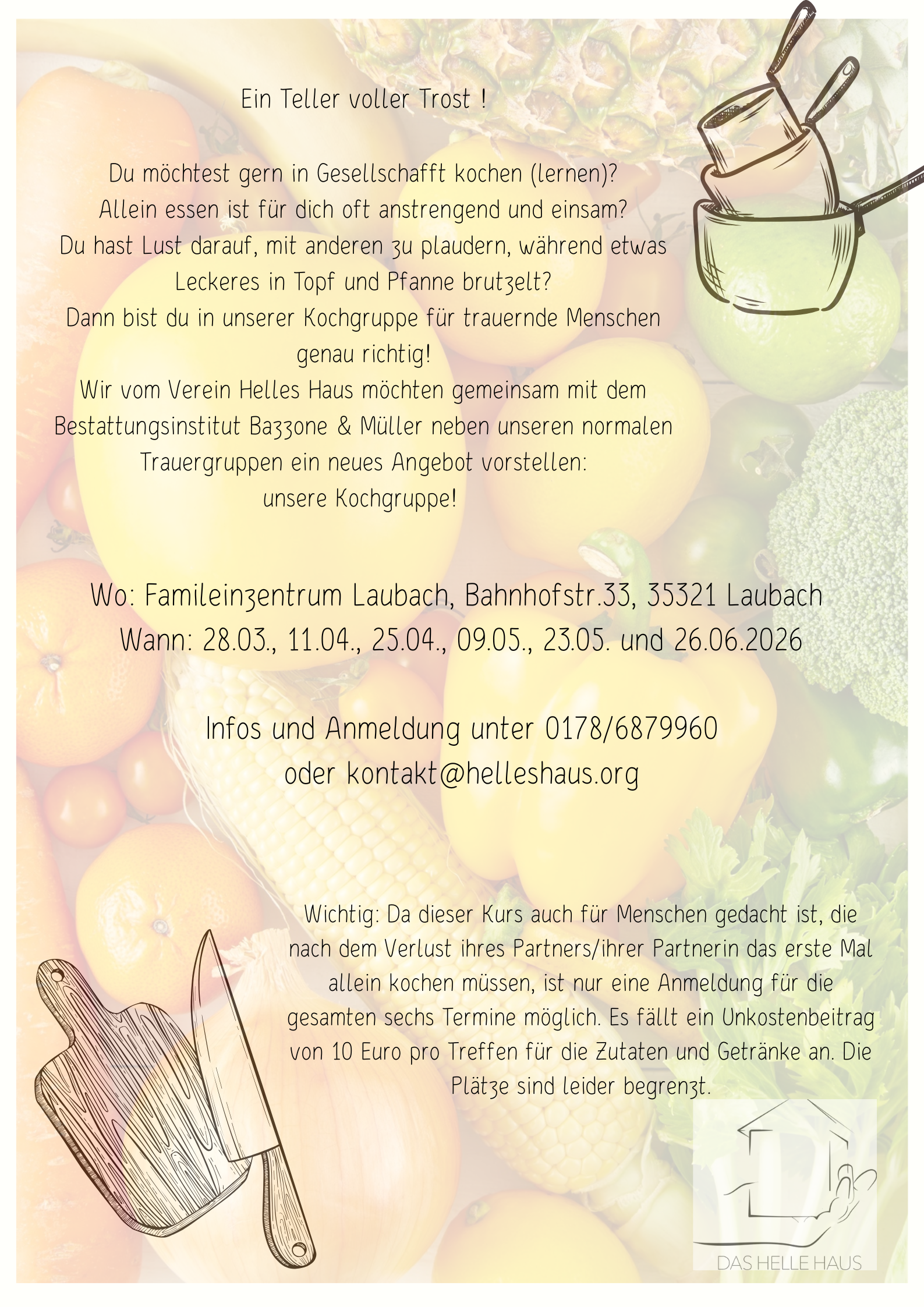 Das „Helle Haus“ möchte in dieser schweren Zeit ein Ort der Geborgenheit sein. Ein Ort, an dem Trauer sein darf – mit all ihren Facetten. Hier finden Menschen, die einen Verlust erlitten haben, Raum zum Atmen, Zeit zum Fühlen und die Möglichkeit, sich in Gemeinschaft gehalten zu wissen.